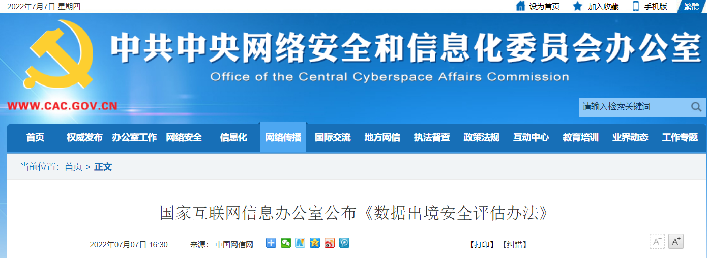 7月7日,国家互联网信息办公室公布《数据出境安全评估办法》(以下简称《办法》),自2022年9月1日起施行。国家互联网信息办公室有关负责人表示,出台《办法》旨在落实《网络安全法》、《数据安全法》、《个人信息保护法》的规定,规范数据出境活动,保护个人信息权益,维护国家安全和社会公共利益,促进数据跨境安全、自由流动,切实以安全保发展、以发展促安全。