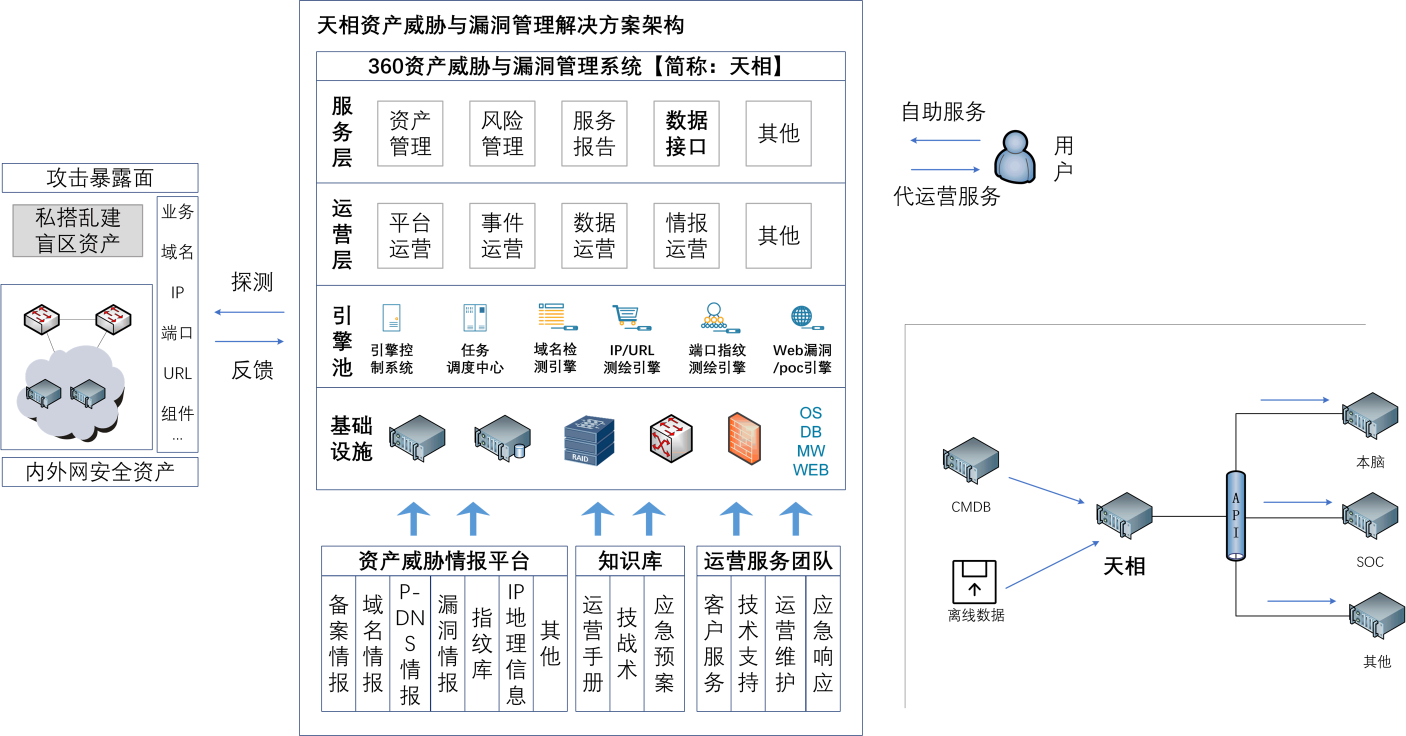 天相提供全量API,可对接本地安全大脑、漏洞管理平台及其他三方系统。