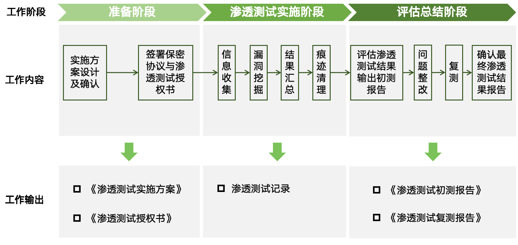 渗透测试是一种对抗性和定制化要求都非常高的一类安全测试,安全工程师在书面授权后尽可能完整地模拟黑客可能使用的漏洞发现技术与攻击技术(与黑客攻击相比其结果是可预知性的),对目标网络、主机、数据库与应用系统的安全性做深入的探测,发现系统薄弱环节的过程。能够直观地让管理人员知道当前网络、主机、数据库与应用系统存在的安全弱点以及可能造成的影响,以便采取必要的防范措施。