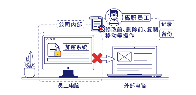 - 员工提出离职后,企业担心在离职交接期间将企业内重要的数据进行破坏性删除,需要对这类特殊员工进行管控