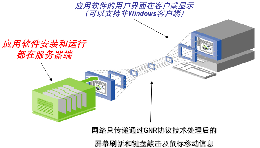 应用虚拟化系统面向的核心对象是应用软件,无论是CS类还是BS类软件都可以进行发布、管理与维护。
